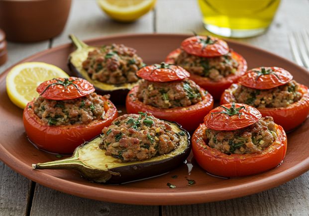 חצילים ועגבניות ממולאים בבשר