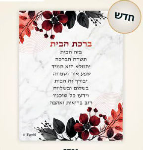 הברכה מוגשת כתמונה על רקע ציונו המקורי של רבי נחמן עם אותיות “האש שלי” ובמרכז ברכת הבית. מסגרת בגווני בורדו עם פסי זהב. לתמונה מתלה לתלייה על הקיר או רגלית להנחה על השולחן. גודל 24.5*33 ס”מ.