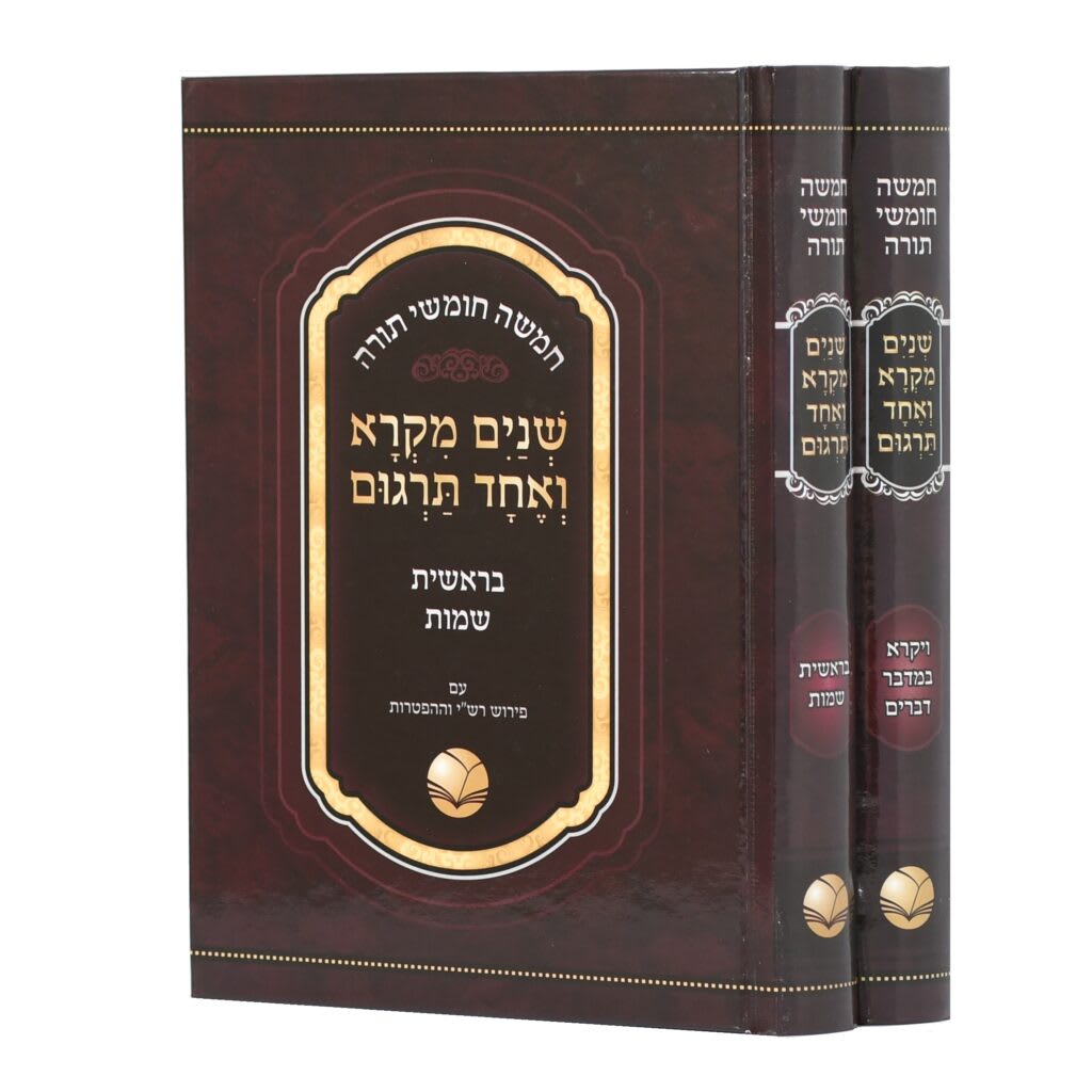 מהדורה יפה מוגהת ומהודרת של חמשת חומשי התורה עם פרוש רש”י ותרגום אונקלוס, כולל סדר ההפטרות, חמשת המגילות ותפילות השבת בנוסח ספרד (אשכנזי-חסידי).
