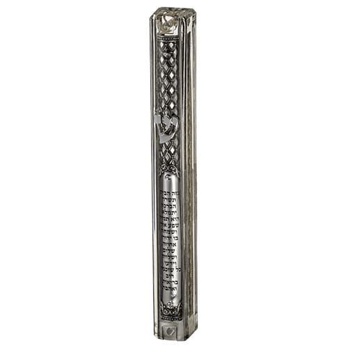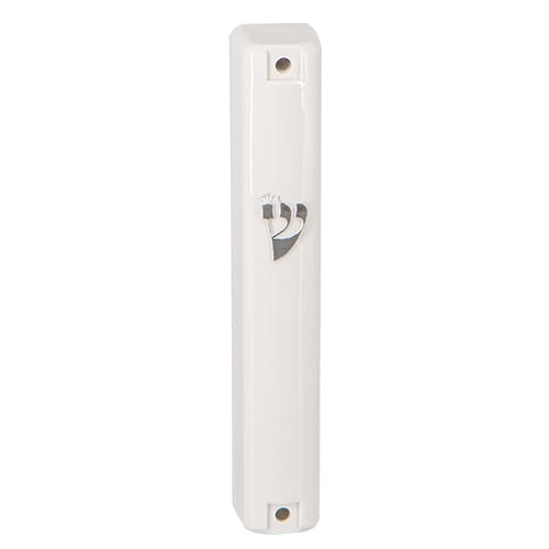 מזוזה צבעונית מרהיבה וייחודית עם פרחים ססגוניים על רקע כחול. האות “ש’ גדולה בצבע לבן בחלק העליון של המזוזה. חיתוך לייזר. גודל 12 ס”מ. למזוזה מצורף פס הדבקה.