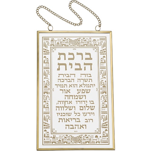 צלוחית מוזהבת עם מילות תקווה חיוביות במסגרת בצבע מהגוני.