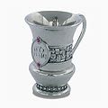 גביע ענק, מהודר ומפואר בציפוי ניקל איכותי עטור פיתוחים וקישוטים שונים עם תחריט מרכזי בדוגמת ירושלים.
