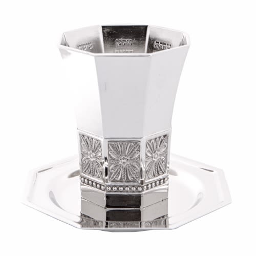 גביע קידוש 'עיטורים' מהודר ציפוי כסף טהור 925 עם רגל ותחתית