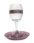 גביע קידוש עשוי זכוכית עם עיטור בצורת ענבים וצלוחית תואמת. - עבודת יד.
