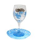 גביע קידוש עשוי זכוכית עם עיטור "בורא פרי הגפן" וצלוחית תואמת. - עבודת יד.