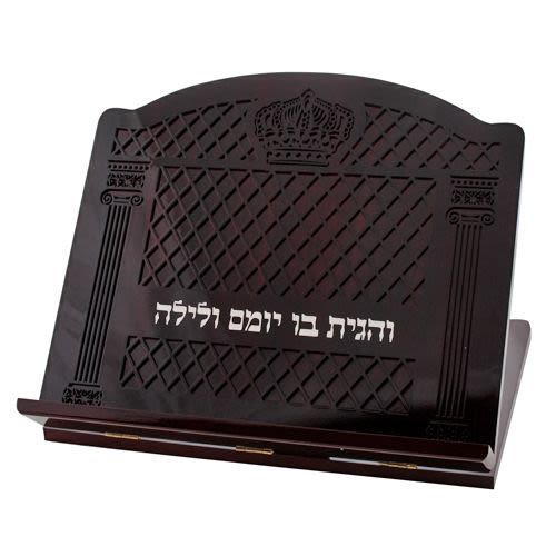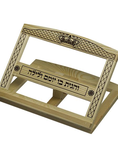 חדש! סטנדר מרהיב עשוי עץ עם עיטורים מיוחדים בחלק העליון של הסטנדר ובצדדיו.בחלק האמצעי הכיתוב "והגית בו יומם ולילה". גודל 33*26 ס"מ.