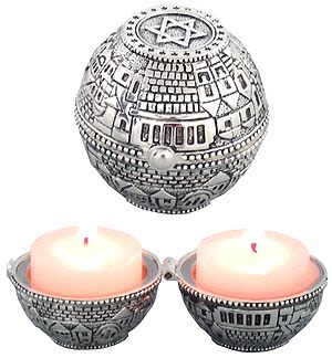 פמוט "ירושלים", בצורת כדור 5X5 ס"מ שנפתח לזוג פמוטים, מתאים במיוחד לנסיעות. מומלץ ביותר!!!
