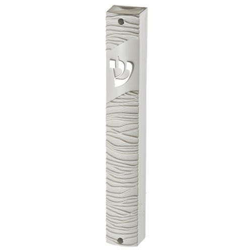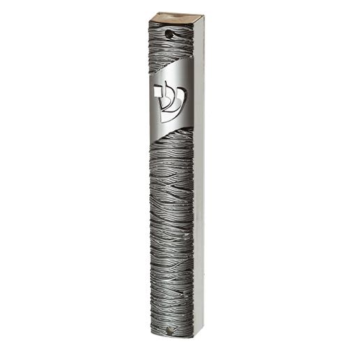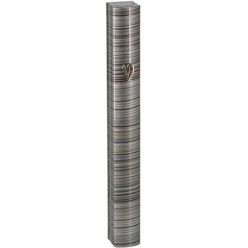 חדש! בית מזוזה מיוחת עשוי אלומיניום, צבוע בתלת מימד מטאלי - פסים בגווני אפור. גודל 15 ס"מ. ארט יודאיקה.